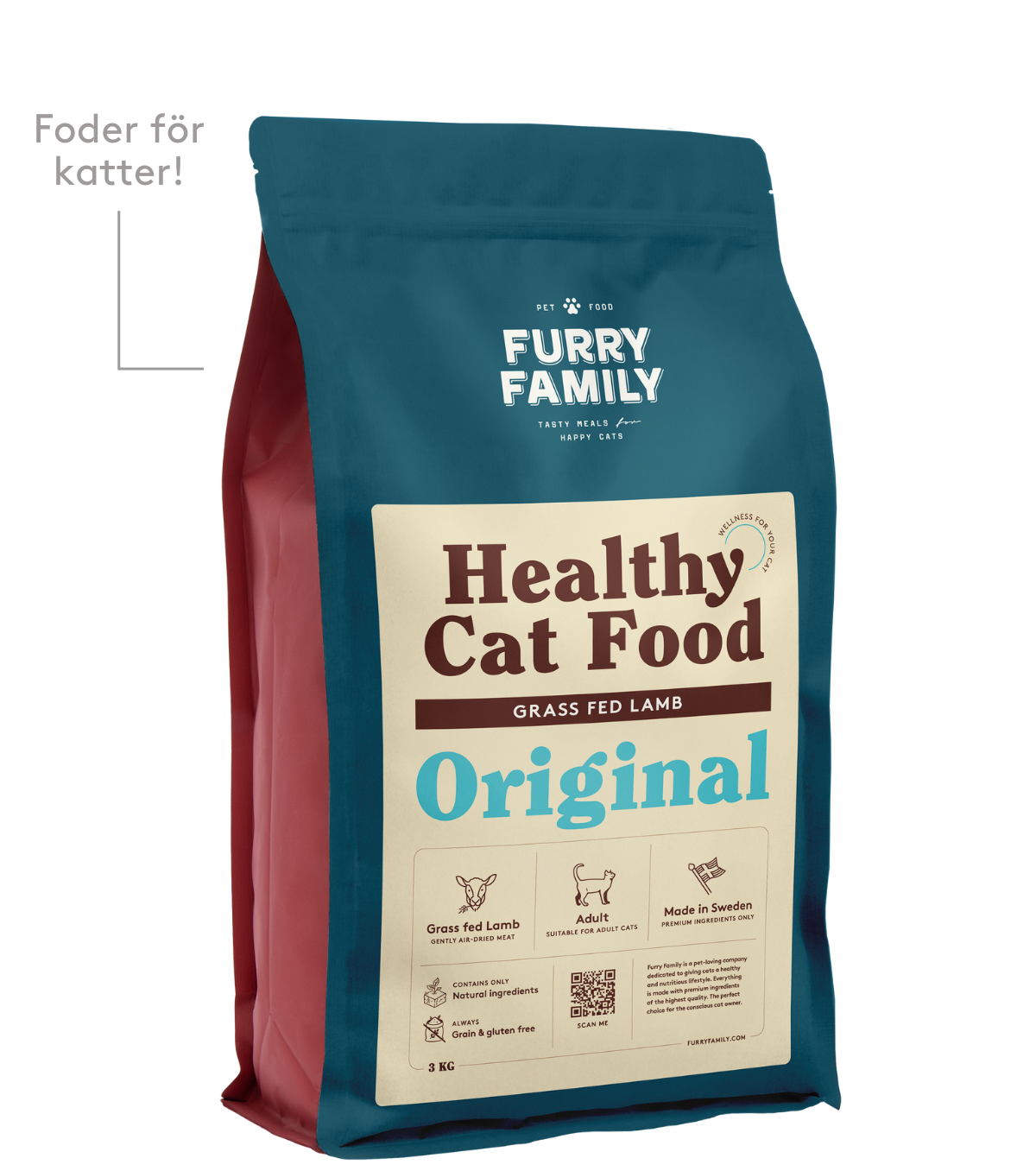 Furry Family Original Cat Lamb Original är utvecklat för att ge katter ett naturligt, näringsrikt och smakligt foder som bygger hälsa inifrån. Det är resultatet av svensk produktion, smart näringslära och ett starkt fokus på kattens behov – från hjärta och mage till päls och humör.