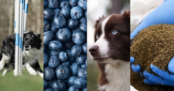 Ingredienser: Bearbetat animaliskt protein från insekter, ärtstärkelse, sötpotatis, ärtor, potatis, potatisprotein, rapsolja, ärtfiber, monokalciumfosfat, linfrö, morot, torkad betmassa, cellulosafiber, lecitin, blåbär, prebiotika, glukosamin, kondroitin.