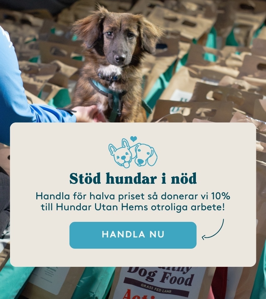 FÅ EN PERSONLIG REKOMMENDATIONVi är en grupp aktiva hundägare som älskar våra husdjur. Det vi har gemensamt, utöver våra hundar, är att vi gillar att träna, ta hand om oss själva samt att äta god och hälsosam mat. Att klimatkompensera så långt det går är en självklarhet för oss precis som att noga granska vad vi stoppar i oss. Vid flera tillfällen har frågan kommit upp vid middagsbordet hur det kommer sig att vi själva är så noga med att leva hälsosamt, men att vi inte har reflekterat över vad vi matar våra hundar med? Vi satte oss därför ner och började granska innehållet i hundmaten hos de största hundmatstillverkarna. Det var en skrämmande läsning. Flera av de ledande varumärkena har låga energivärden och med ett lågt köttinnehåll från djur utanför EU där djurlagstiftningen är låg. Resten av ingredienserna är olika tillsatser och billig utfyllnad såsom spannmål och vegetabiliska biprodukter. Vi lärde oss snabbt att hundmat är idag alltså av mycket varierande kvalitet och det är svårt att veta vad min hund får i sig.