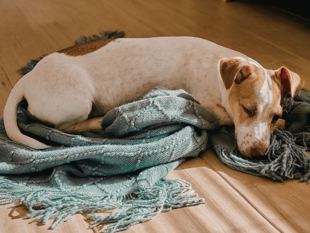 Upprepa tills filten blir som en magnet – hunden går självmant dit och lägger sig när filten kommer fram.