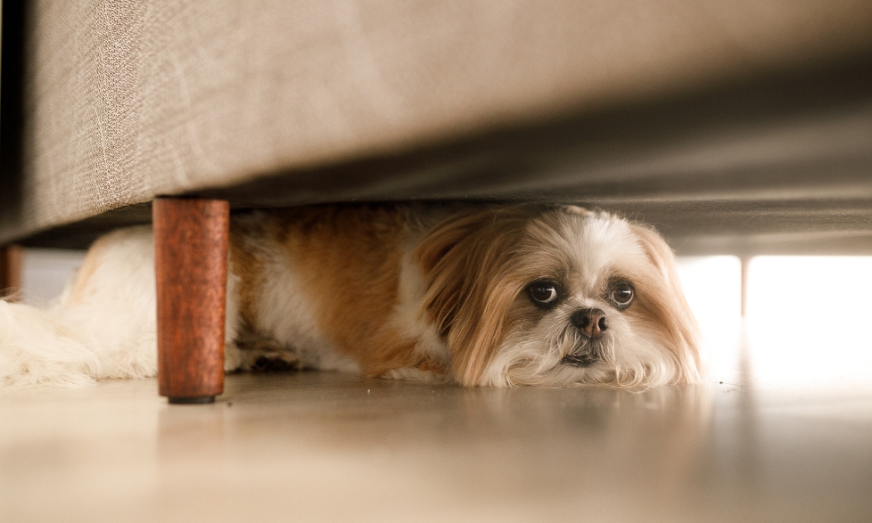 Hunden försöker gömma sig under möbler, undviker ögonkontakt eller försöker aktivt fly från en situation.